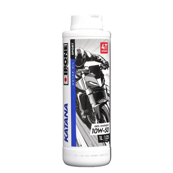 IPONE Katana 10W50 – мотоциклетное масло на 100% синтетической основе из полиальфаолефинов (ПАО) и сложных эфиров. Эфиры (или эстеры) придают маслу, говоря простыми словами, некой «жирности», которая добавляет плавности и четкости переключению передач. Если оценить качество масла после замены трудно, то при переходе на Катану плавность и четкость работы коробки сразу замечают все.