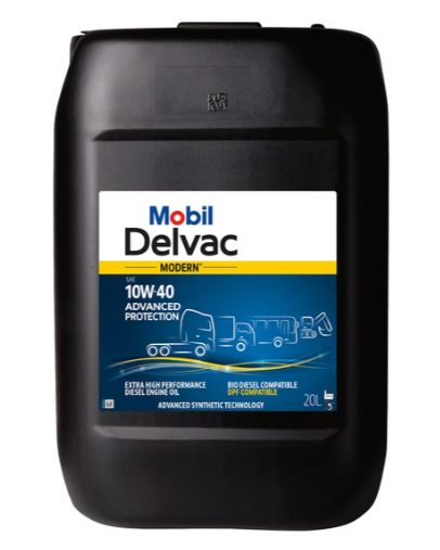 Двигуни з високою потужністю та низьким рівнем викидів значно підвищують вимоги до моторних мастил. Більш жорстка конструкція двигуна, використання проміжних охолоджувачів і турбокомпресорів збільшують термічні навантаження на мастильний матеріал. Технології двигунів з низьким рівнем викидів, такі як вищий тиск упорскування палива, уповільнена синхронізація та пристрої доочищення, вимагають покращених характеристик оливи в таких сферах, як стійкість до окислення, диспергування сажі, летючість і сумісність із пристроями доочистки. Удосконалена технологія Mobil Delvac Modern 10W-40 Advanced Protection забезпечує виняткову продуктивність, можливість тривалого інтервалу заміни та захист вихлопних систем, у тому числі тих, які оснащені сажовими фільтрами (DPF). Ключові переваги: